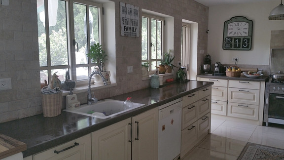 כל זה כלל ריצוף מחודש בכל הבית, החלפת וחידוש חשמל ואינסטלציה מלאה, קילוף טיח שפריץ גס של שנות השמונים והחלפתו בטיח דקורטיבי נעים, וכמובן, חלונות אלומיניום ופתחים חדשים בהתאם לשינוי...